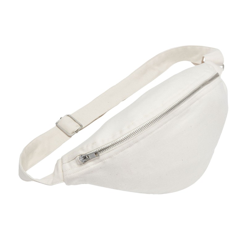 Sac banane avec fermeture éclair en métal et tir-zip Bandoulière double épaisseur avec coutures renforcées et boucles de réglage en métal Poche intérieure avec étiquette gros grain "Fabriqué en France"