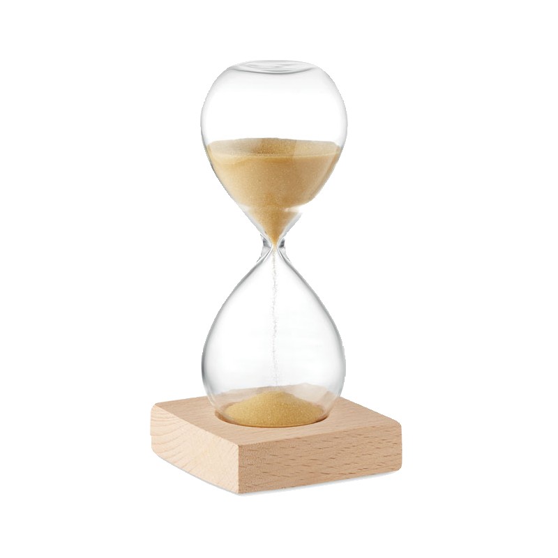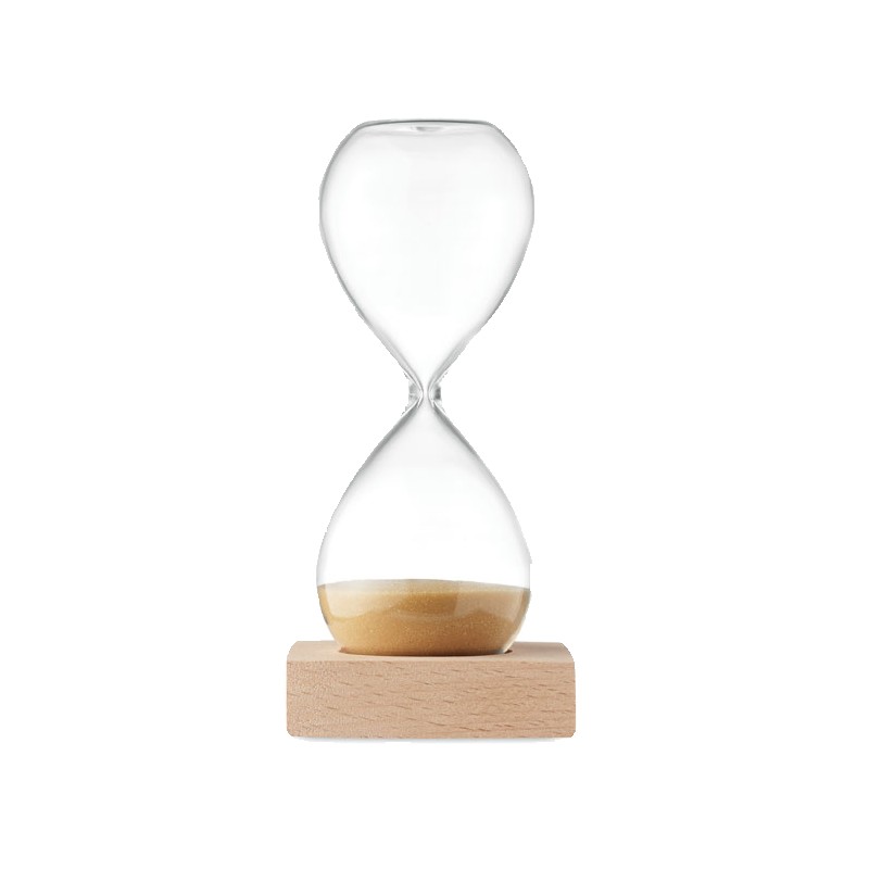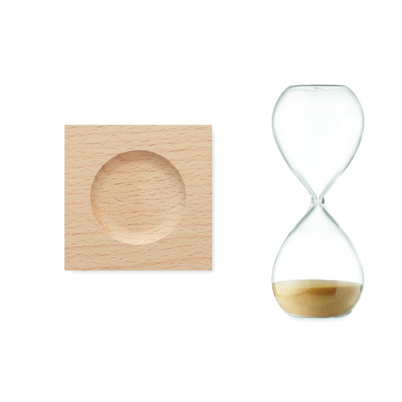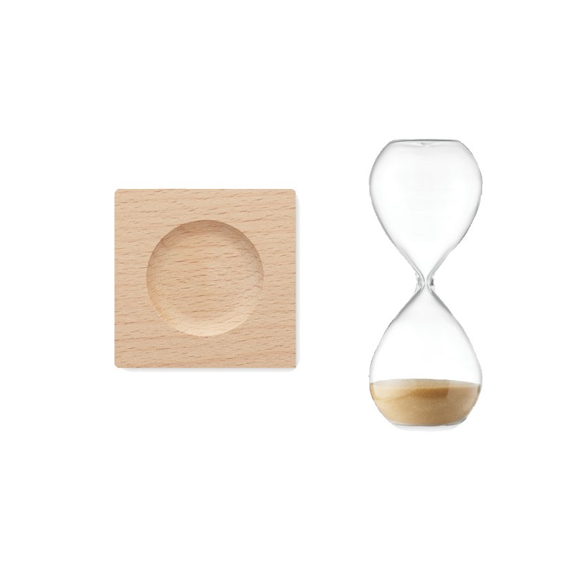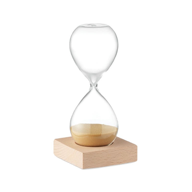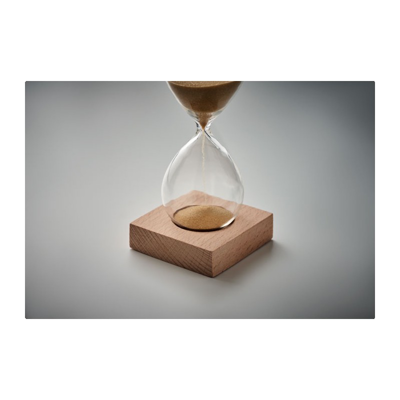 Sablier de 5 minutes en verre borosilicate avec base en bois de hêtre.