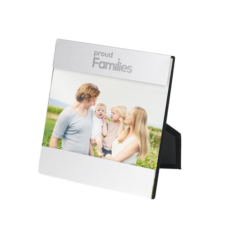 Cadre photo en aluminium avec support d'appui. 135 x 135 x 4 mm | Photo: 135 x 75 mm