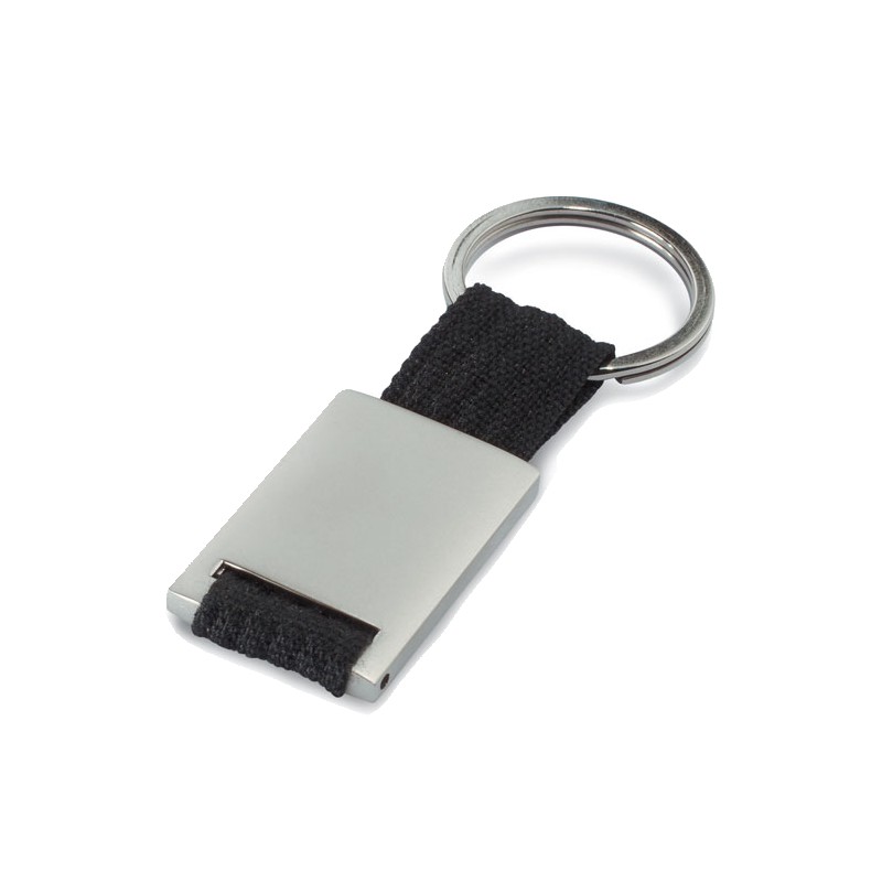 Porte-clés rectangulaire en alliage de zinc. Sangle en PE.