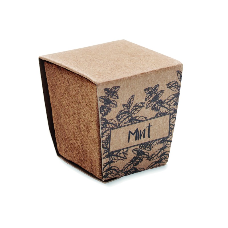 Pot de tourbe biodégradable avec graines de menthe. Fabriqué dans l'UE. Pastille de terreau incluse.